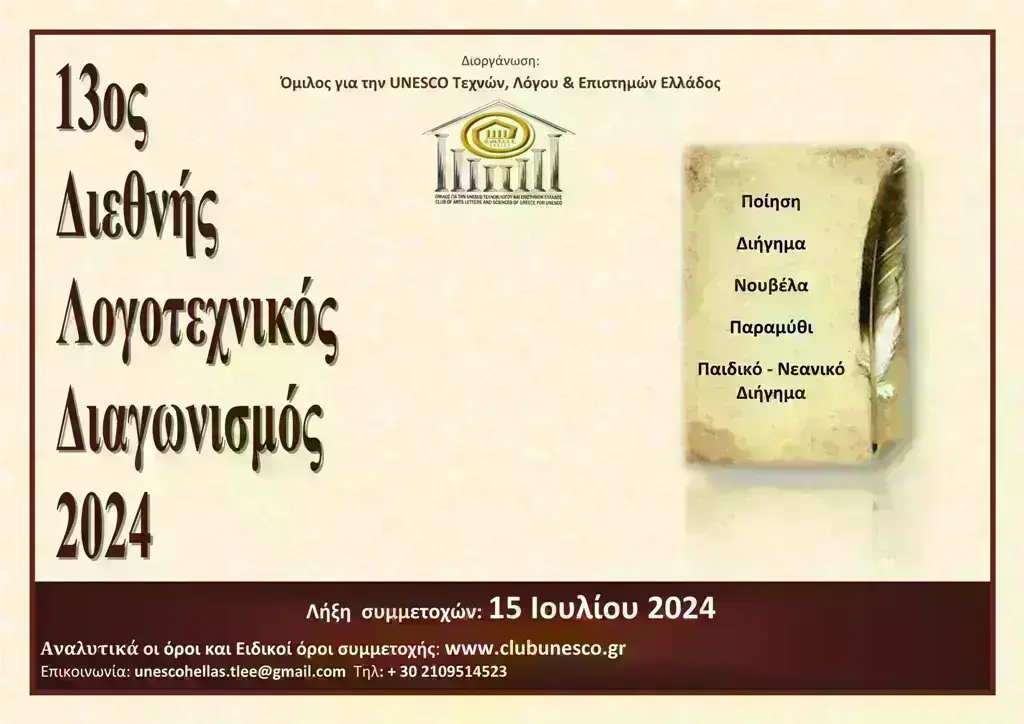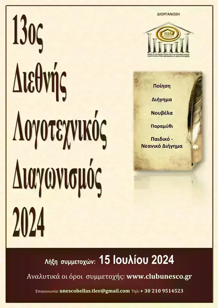 - Η αποστολή των έργων θα πραγματοποιηθεί με απλή επιστολή και όχι συστημένη από την 13η Μαϊου ως την 15η Ιουλίου 2024, η οποία αποδεικνύεται με τη σφραγίδα του ταχυδρομείου, ή του courier.