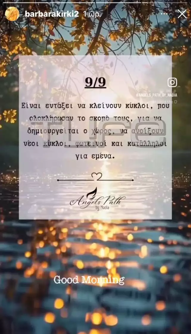 Λίγες ώρες μετά την αποκάλυψη του χωρισμού τους, η Βαρβάρα Κίρκη προχώρησε σε μια ανάρτηση μέσα από τον λογαριασμό της στο Instagram .