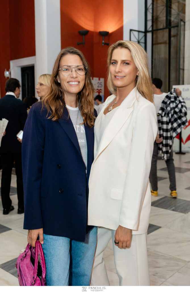 Οι δύο γυναίκες πόζαραν μαζί στον φακό, ξεχωρίζοντας για τα looks τους και τις στιλιστικές τους επιλογές. Η Βίκυ Καγιά επέλεξε ένα denim παντελόνι με oversized σακάκι, ενώ η Τατιάνα Μπλάτνικ ένα λευκό κοστούμι που αναδείκνυε το σώμα της.