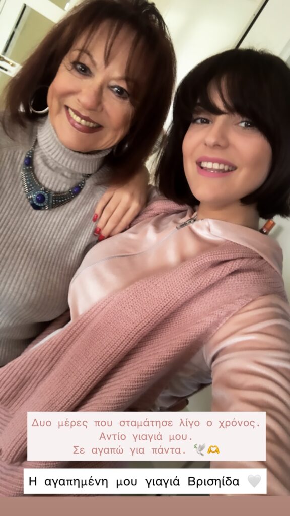 «Δύο μέρες που σταμάτησε λίγο ο χρόνος. Αντίο γιαγιά μου. Σε αγαπώ για πάντα. Η αγαπημένη μου γιαγιά Βρισηίδα», έχει γράψει η influencer και επιχειρηματίας στο story της.
