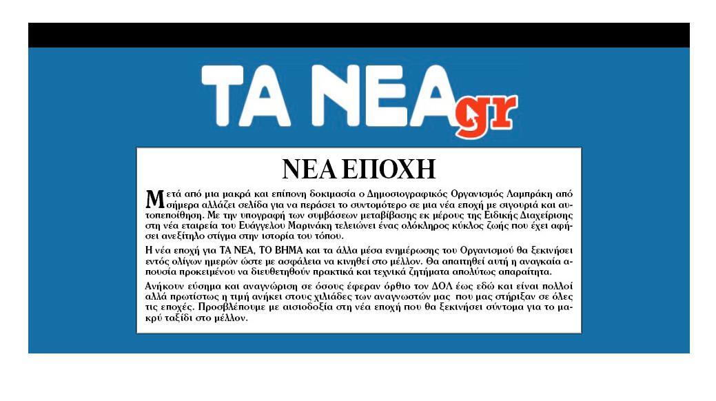 Να σημειωθεί ότι ιστότοποι των εφημερίδων του Συγκροτήματος, tovima.gr και tanea.gr, έπαψαν να λειτουργούν ενώ ένα μήνυμα εμφανίζεται σε όσους προσπαθούν να τις επισκεφτούν.
