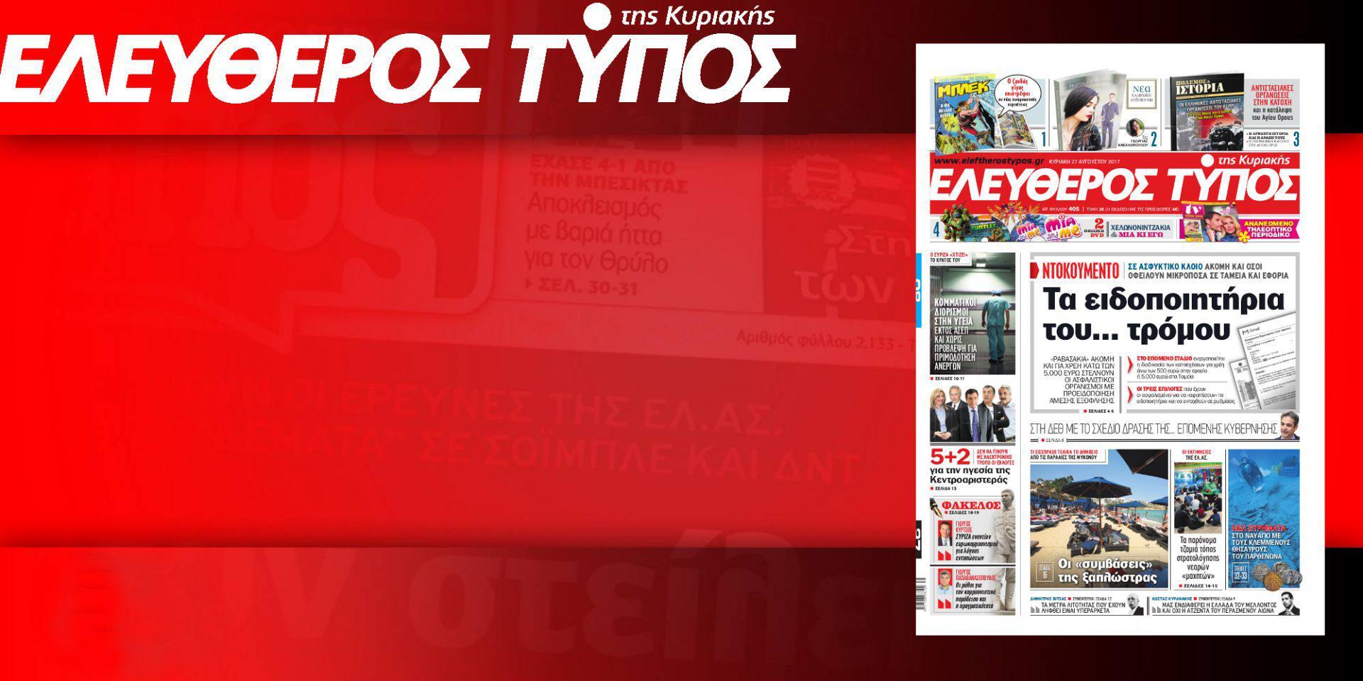 Στην Κυριακάτικη έκδοση του Ελεύθερου Τύπου θα διαβάσετε την συνέντευξη του Αναπληρωτή Υπουργού Εθνικής Άμυνας Δημήτρη Βίτσα ο οποίος λέει πώς « τα μέτρα λιτότητας που έχουν ληφθεί είναι υπεραρκετά» αλλά και την συνέντευξη του Αναπληρωτή εκπροσώπου Τύπου της Νέας Δημοκρατίας Κώστανσταντίνου Κυρινάκη που επισημαίνει πως «η κυβέρνηση φλυαρεί για την ανάπτυξη και τις επενδύσεις, αλλά η πραγματικότητα την διαψεύδει κάθε μέρα» και υπογραμμίζει πως «η Ελλάδα χρειάζεται έναν πρωθυπουργό που θα μπορεί να πείσει Eλληνες και ξένους επενδυτές ότι τα χρήματά τους θα πιάσουν τόπο». Με αφορμή, τέλος, το συνέδριο στην Εσθονία, ξεκαθαρίζει ότι «μας ενδιαφέρει η Ελλάδα της επόμενης δεκαετίας, όχι μία συζήτηση του προηγούμενου αιώνα».