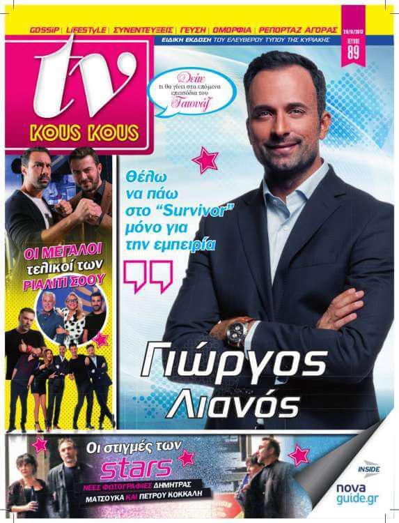 Τέλος μαζί με τον Ελεύθερο Τύπο της Κυριακής κυκλοφορεί εντελών δωρεάν και το ανανεωμένο τηλεοπτικό περιοδικό TV Kους Κους με αποκλειστική συνέντευξη του Γιώργου Λιανού που λέει πως θέλει να πάει στο Survivor. Θα διαβάστε επίσης για τους μεγάλους τελικούς των ριάλιτι σόου αλλά και όλες τις στιγμές των σταρ.