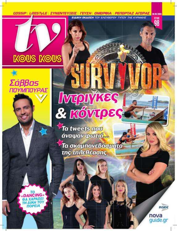 Τέλος μαζί με τον Ελεύθερο Τύπο της Κυριακής κυκλοφορεί εντελών δωρεάν και το ανανεωμένο τηλεοπτικό περιοδικό TV Kους Κους! Σε αυτό το τεύχος θα διαβάσετε μεταξύ των άλλων όλα τα νέα για το Survivor 2 και συνέντευξη του Σάββα Πούμπουρα.