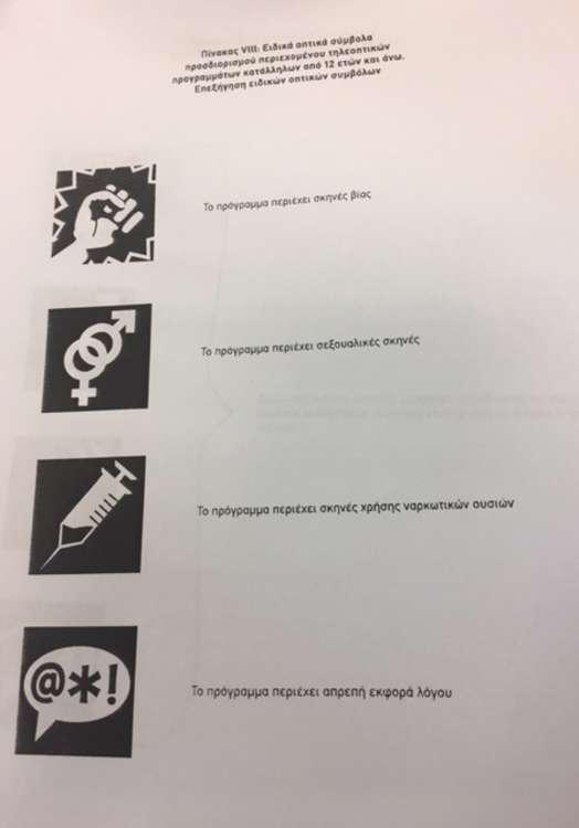 -Με τον αριθμό 16, τα προγράμματα και τα τρέιλερ είναι κατάλληλο για ηλικίες άνω των 16 ετών και θα πρέπει να μεταδίδεται από τις 23.00 ως τις 6.00 το πρωί