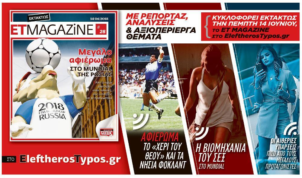 Στο νέο τεύχος του ET Magazine που είναι αφιερωμένο εξ ολοκλήρου στο Mundial της Ρωσίας, θα διαβάσετε για μοναδικές ιστορίες που σημάδεψαν τα παγκόσμια κύπελλα και έγιναν σημεία αναφοράς για το παγκόσμιο ποδόσφαιρο.