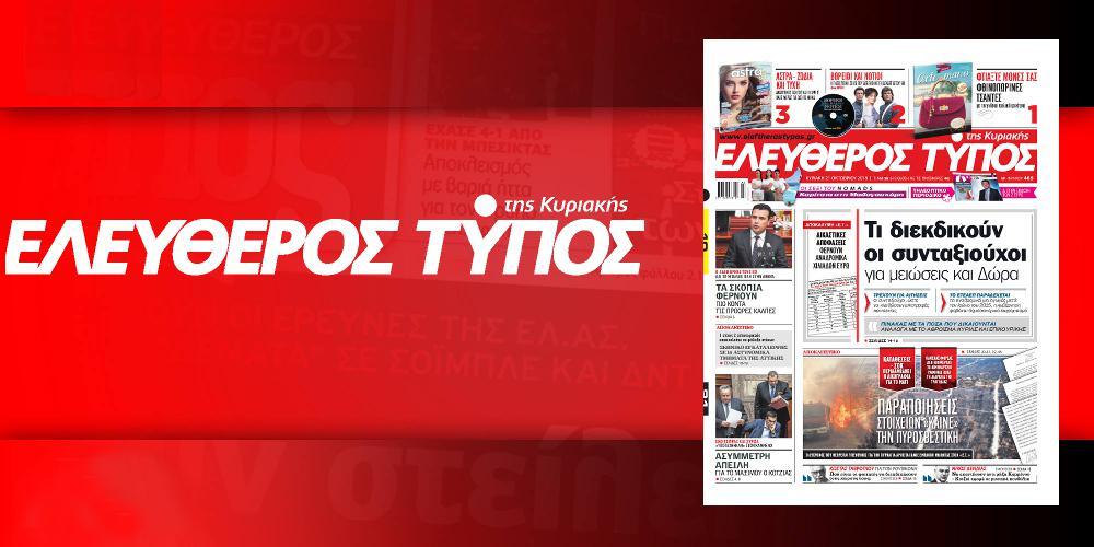 Τέλος αναλύσεις για τις διεθνής και εσωτερικές εξελίξεις, ενδιαφέροντα θέματα και μαχητική και καυστική αρθρογραφία φιλοξενούνται στο φύλο του Ελεύθερου Τύπου της Κυριακής που κυκλοφορεί στα περίπτερα όλης της χώρας.