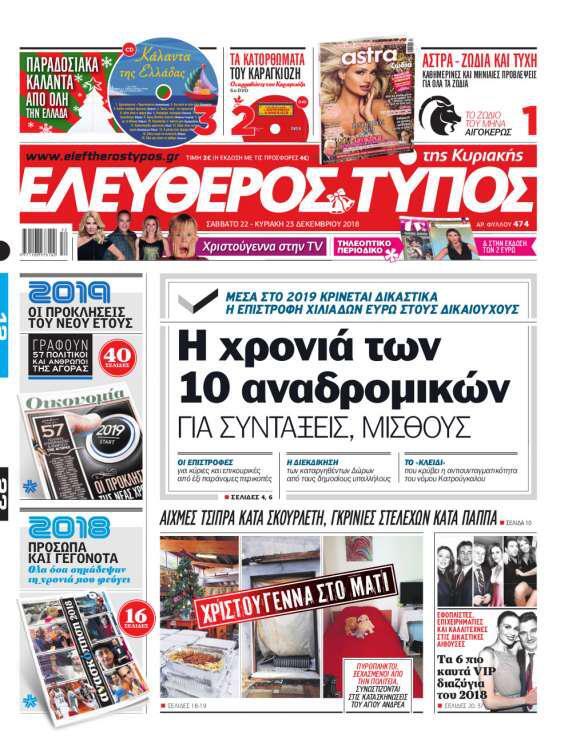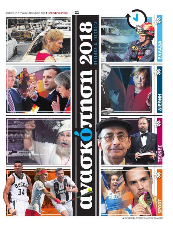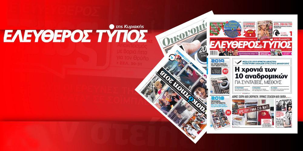 Στον Ελεύθερο Τύπο της Κυριακής που κυκλοφορεί εκτάκτως το Σάββατο 22 Δεκεμβρίου θα διαβάσετε την ανασκόπηση του 2018 αλλά και για τις προκλήσεις που φέρνει το 2019.