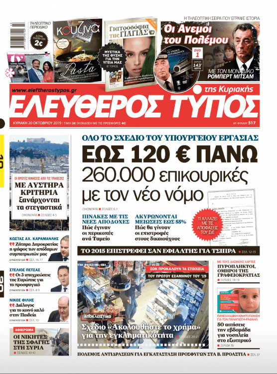 Πρωτοσέλιδος τίτλος είναι ολο το σχέδιο του υπουργείου εργασίας για τις επικουρικές συντάξεις. Σύμφωνα με τον προγραμματισμό πάνω από 260.000 επικουρικές θα δουν αυξήσεις έως και 120 ευρώ.
