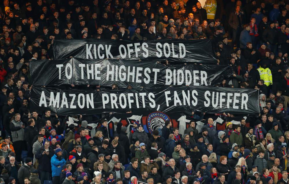 Χαρακτηριστικό ήταν το πανό των οπαδών της Κρίσταλ Πάλας που έγραφε: «Η Amazon κερδίζει, οι φίλαθλοι υποφέρουν».