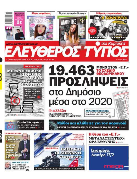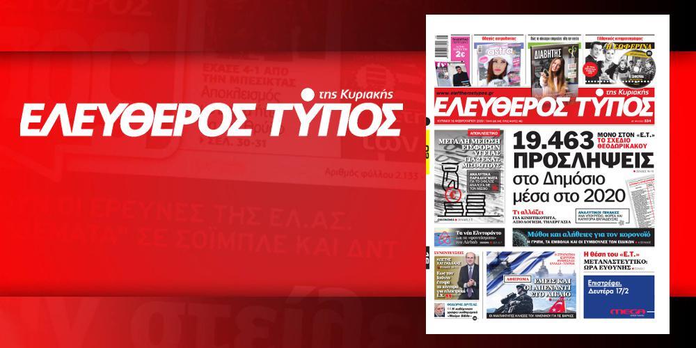 Μόνο στον Ελεύθερο Τύπο της Κυριακής όλο το σχέδιο Θεοδωρικάκου για 19.463 προσλήψεις στο Δημόσιο μέσα στο 2020