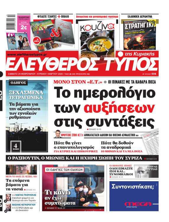 Στον Ελεύθερο Τύπο της Κυριακής που κυκλοφορεί εκτάκτως το Σάββατο 29 Φεβρουαρίου θα βρείτε τις εξής μοναδικές προσφορές για όλη την οικογένεια.