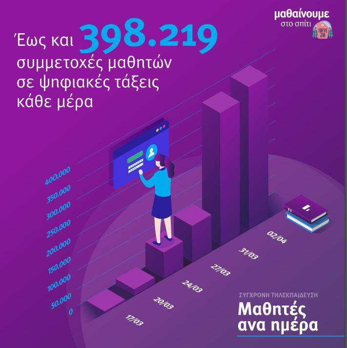 – 398.219 συμμετοχές μαθητών σε ψηφιακές τάξεις καθημερινά,