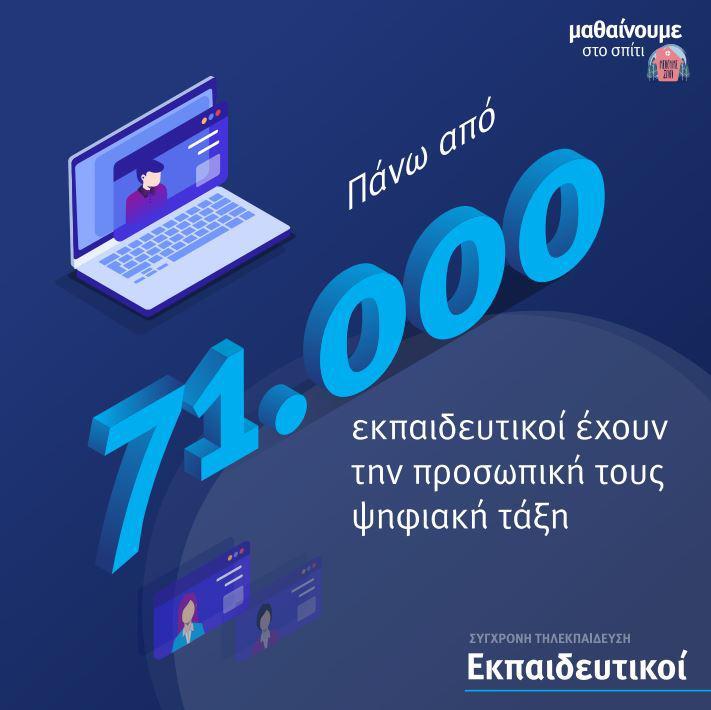 – 71.701 εκπαιδευτικοί έχουν δημιουργήσει την προσωπική ψηφιακή τους τάξη,