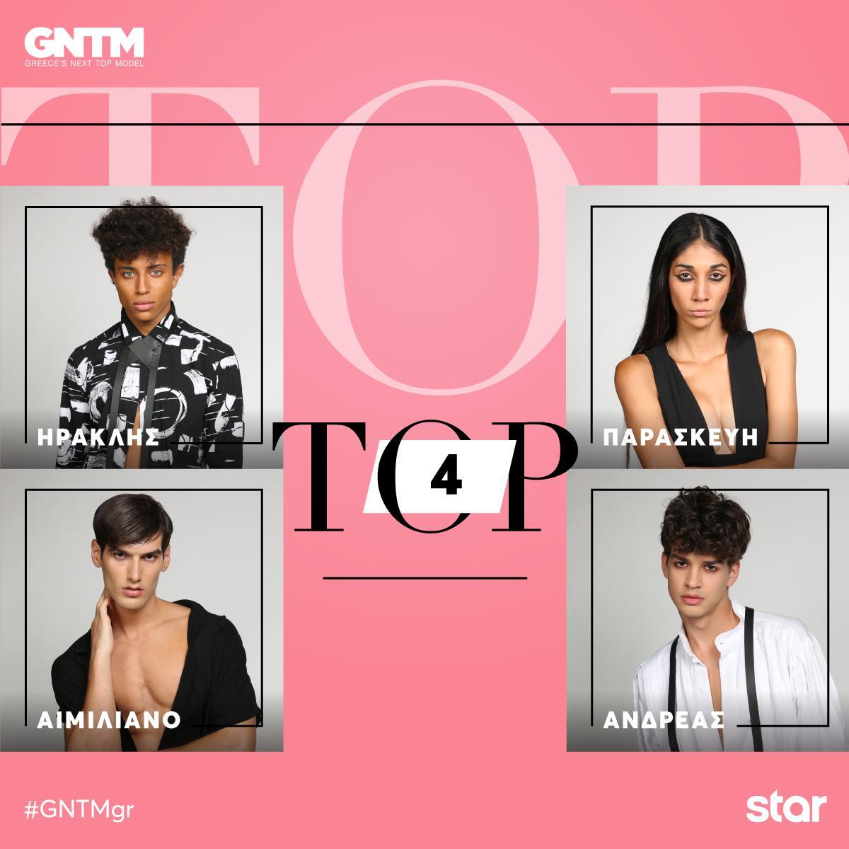 Οι τέσσερις, που διεκδικούν τον τίτλο του «GNTM 3», o Αιμιλιάνο Μάρκου, ο Ανδρέας Αθανασόπουλος, ο Ηρακλής Τσουζίνοφ και η Παρασκευή Κερασιώτη, οδηγούνται στις δοκιμασίες του τελικού που θα κρίνουν τον μεγάλο νικητή.