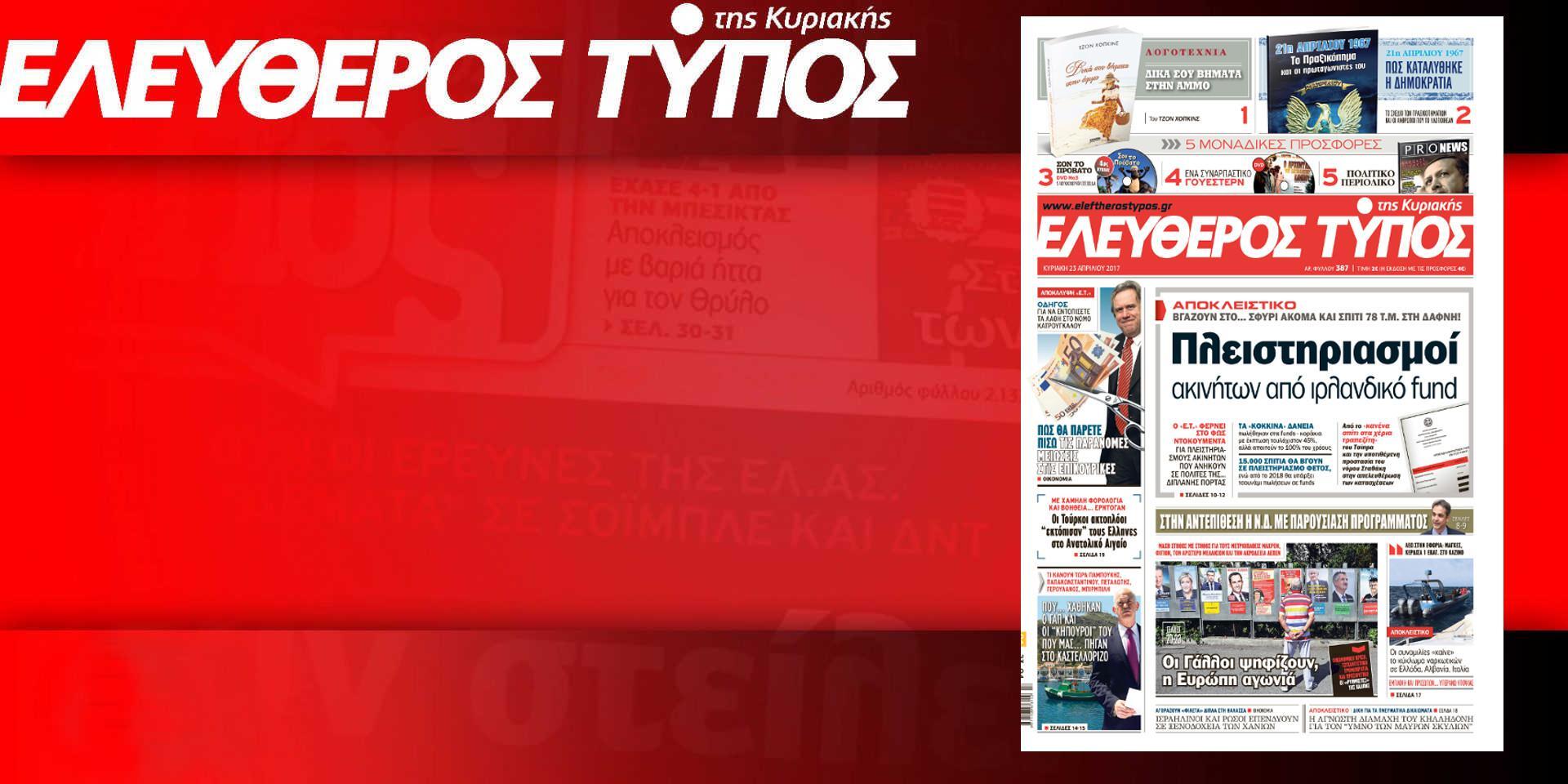 Μην χάσετε τον Ελεύθερο Τύπο της Κυριακής, 23 Απριλίου, με 5 μοναδικές προσφορές