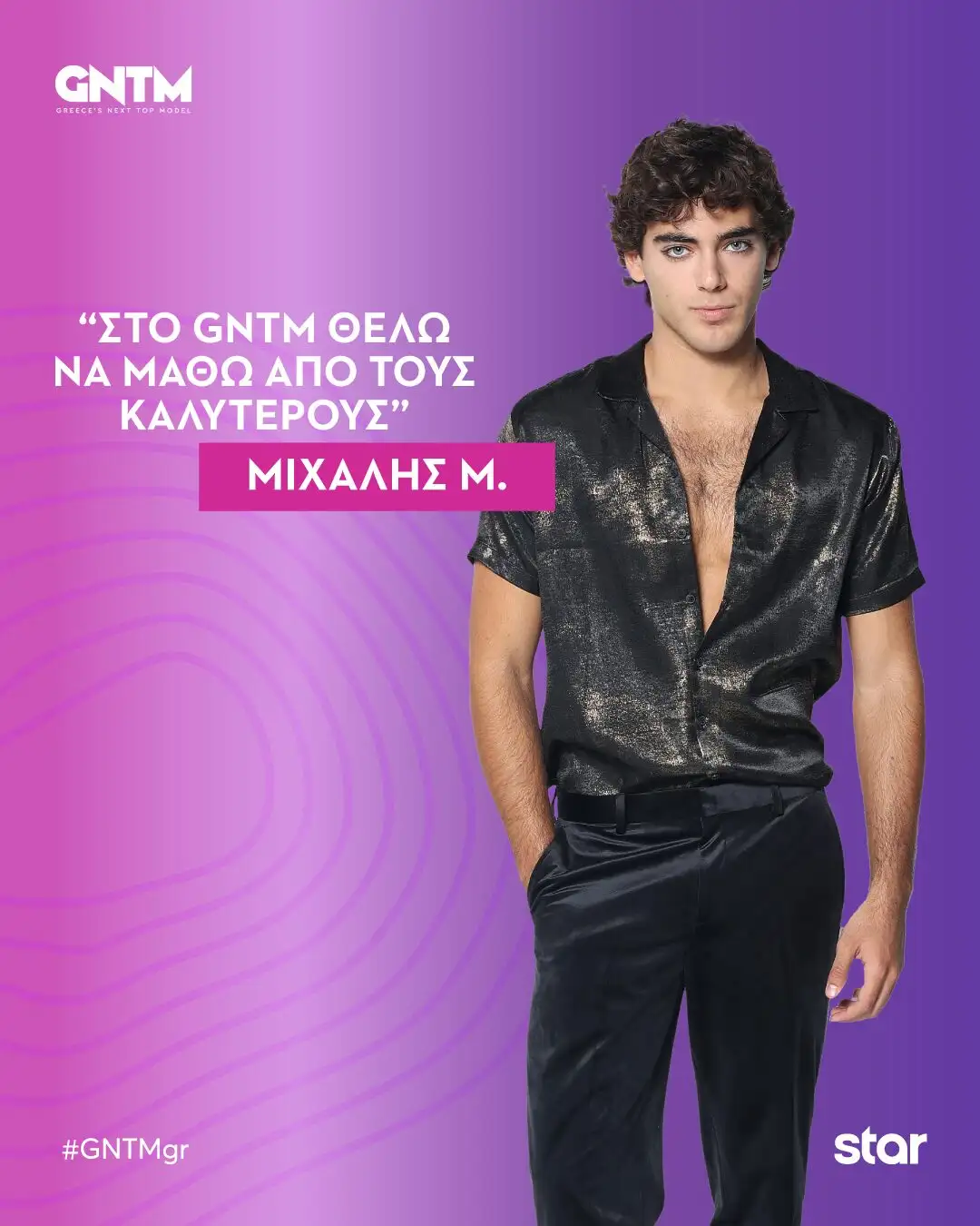 O Μιχάλης κατάγεται από την Κάρυστο και είναι 20 ετών. Ασχολείται πολλά χρόνια ερασιτεχνικά με το πόλο και σπουδάζει στο τμήμα Επικοινωνίας Μέσων και Πολιτισμού. Ασχολείται με τον χώρο του modelling τον τελευταίο χρόνο και έχει ενταχθεί στο δυναμικό ενός πρακτορείου στην Αθήνα, έχοντας καταφέρει να «κλείσει» αρκετές δουλειές. Είναι λακωνικός και μετρημένος και το GNTM 2025 θα είναι για αυτόν και μία προσωπική πρόκληση. Ελπίζει μέσω του διαγωνισμού να μάθει από τους καλύτερους, να εξελιχθεί σε όλα τα επίπεδα και να του δοθεί η ώθηση που χρειάζεται προς την κορυφή.