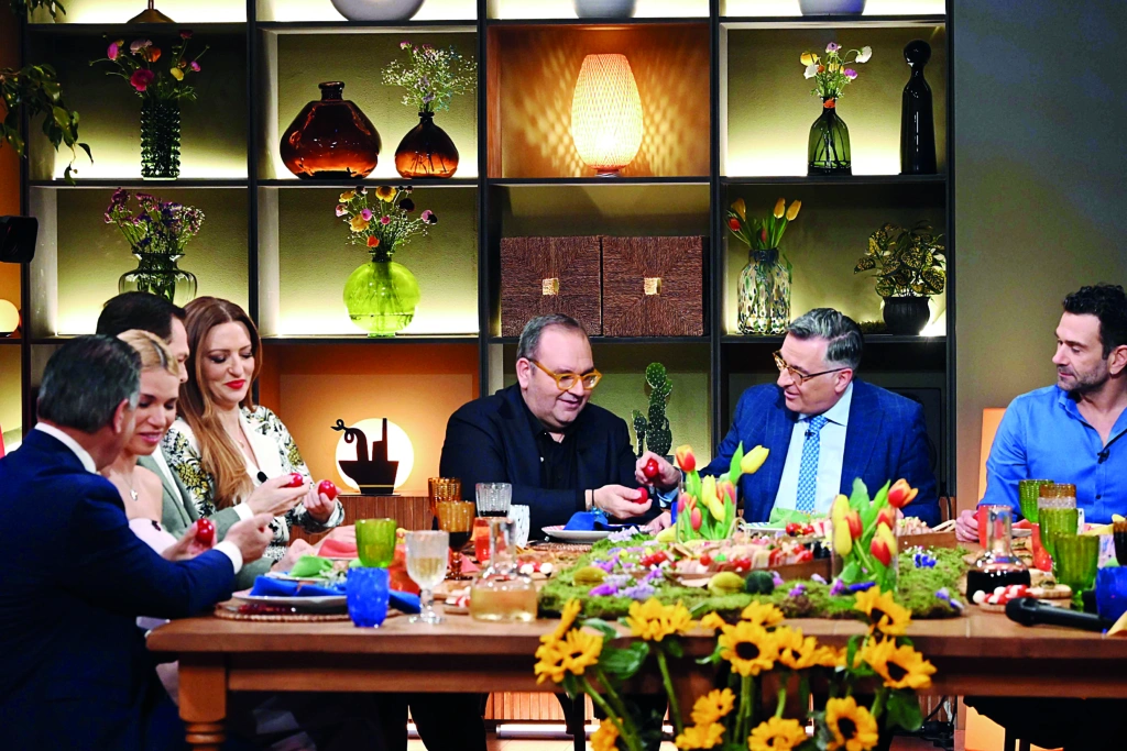 Στις 23.00, η «Παρέα» φοράει τα καλά της, στρώνει ένα μεγάλο γιορτινό τραπέζι, αναπολεί πασχαλινές στιγμές και μοιράζεται έθιμα από πόλεις, νησιά και χωριά, μέσα και έξω από την Ελλάδα, σε ένα ξεχωριστό πασχαλινό γλέντι με τη συνοδεία της Εστουδιαντίνας Νέας Ιωνίας του Ανδρέα Κατσιγιάννη. Ο Γιώργος Κουβαράς φιλοξενεί στο στούντιο τους Τάσο Ιορδανίδη, Ελένη Ψυχούλη, Τζένη Διαγούπη, Κατερίνα Δούκα, Δημήτρη Τάκη, Νικόλα Βαφειάδη και Κέλλυ Βρανάκη. Τραγουδούν η Βιολέτα Ικαρη, ο Γιάννης Διονυσίου και ο Δημήτρης Μπάκουλης.