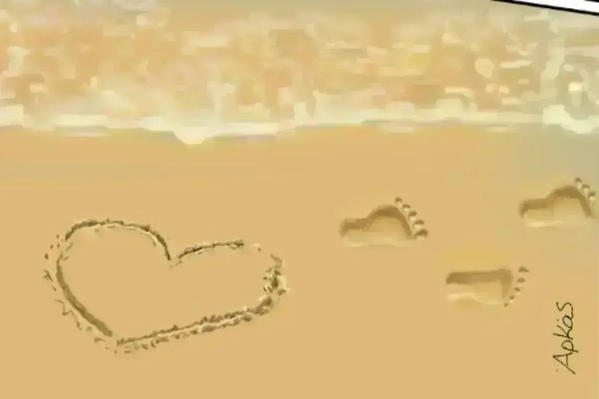 Όπως μπορείτε να δείτε και εσείς στη φωτογραφία που ακολουθεί, φαίνεται να αναζητά τη Θίθυ ενώ στην αμμουδιά σχηματίζει μία καρδιά.