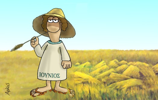 Με ένα σκίτσο που παραπέμπει σε αγροτικές εργασίες, ο Αρκάς μας επισημαίνει ότι το καλοκαίρι μόλις ξεκίνησε.