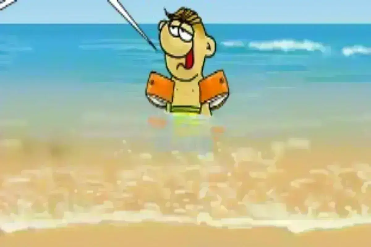 Η φωνή της μητέρας του άκρως διαπεραστική, όπως φαίνεται. Τον καλεί να βγει από τη θάλασσα καθώς βλέπει ένα κύμα να πλησιάζει. Ωστόσο, ο Θανασάκης της απαντά σε λίγο και δείχνει να απολαμβάνει κάθε λεπτό στη θάλασσα. Το κύμα δεν αργεί να φτάσει στο σημείο που βρίσκεται ο Θανασάκης. Η ορμή του είναι τέτοια που σε λίγα δευτερόλεπτα βρίσκεται στην αμμουδιά. Όταν καταλαβαίνει τι συνέβη, αναρωτιέται πως το έκανε αυτό η μητέρα του.