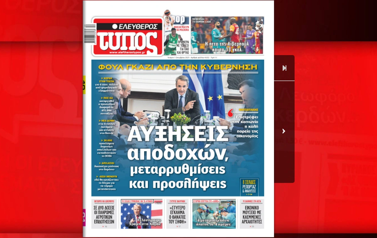 Ωστόσο, το αναγνωστικό κοινό μπορεί να βρει το ακριβές περιεχόμενο της εφημερίδας και να την «ξεφυλλίσει» σε ψηφιακή μορφή ακριβώς από κάτω.