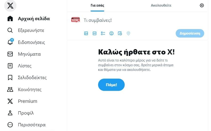 Όπως μπορείτε να δείτε και εσείς στην ακόλουθη εικόνα η αρχική σελίδα του twitter δεν εμφανίζει τις αναρτήσεις των χρηστών.