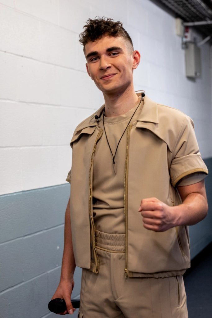 Ο 16χρονος έδωσε τον καλύτερό του εαυτό, ενώ κέρδισε τις πρώτες εντυπώσεις με το κομμάτι «What They Say». Χαμογελαστός και ευδιάθετος, εμφανίστηκε με ρούχα στο χρώμα της άμμου ενώ στη σκηνή θα βρίσκεται μόνος του.