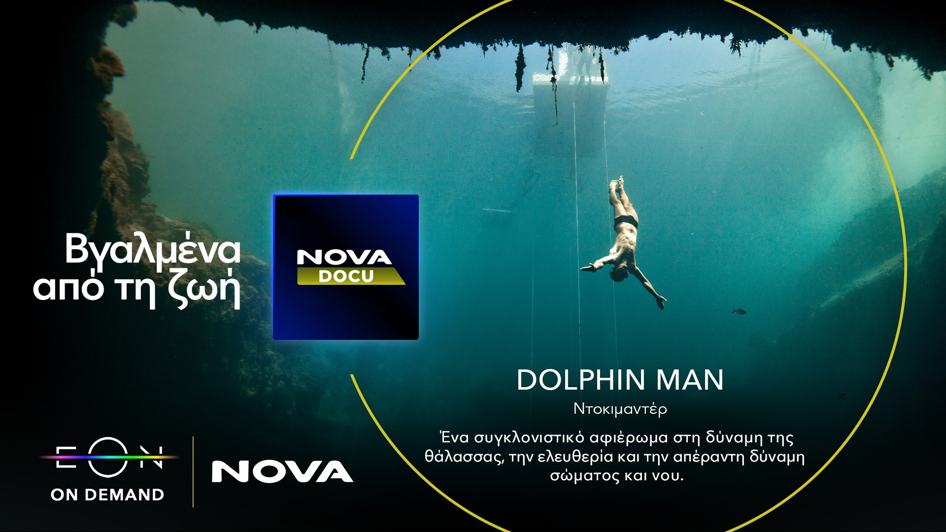 Dolphin Man: Ανακάλυψε την ιστορία του Dolphin Man, του θρυλικού δύτη που βρίσκεται πίσω από την ταινία The Big Blue! To βραβευμένο ως καλύτερο ντοκιμαντέρ στα Βραβεία Ίρις – Ελληνική Ακαδημία Κινηματογράφου (2018) και στο Los Angeles Greek Film Festival (2018) εξιστορεί τη συναρπαστική ιστορία του θρυλικού δύτη Ζακ Μαγιόλ, ήρωα της ταινίας” Το Απέραντο Γαλάζιο” (“The Big Blue”) του Λικ Μπεσόν. Το “Dolphin Man” μεταφέρει το επείγον μήνυμα για την προστασία της θάλασσας και τη βιωματική εμπειρία της επανασύνδεσης του ανθρώπου με τη φύση. Το ντοκιμαντέρ συνδυάζει σπάνια αρχειακά φιλμ με σύγχρονες υποβρύχιες λήψεις, για να αναδείξει πώς ο άνθρωπος-δελφίνι έγινε το σύμβολο μιας ολόκληρης γενιάς, συνδέοντας την ελεύθερη κατάδυση με ένα εσωτερικό ταξίδι που μας φέρνει σε επαφή με τον βαθύτερο εαυτό μας.