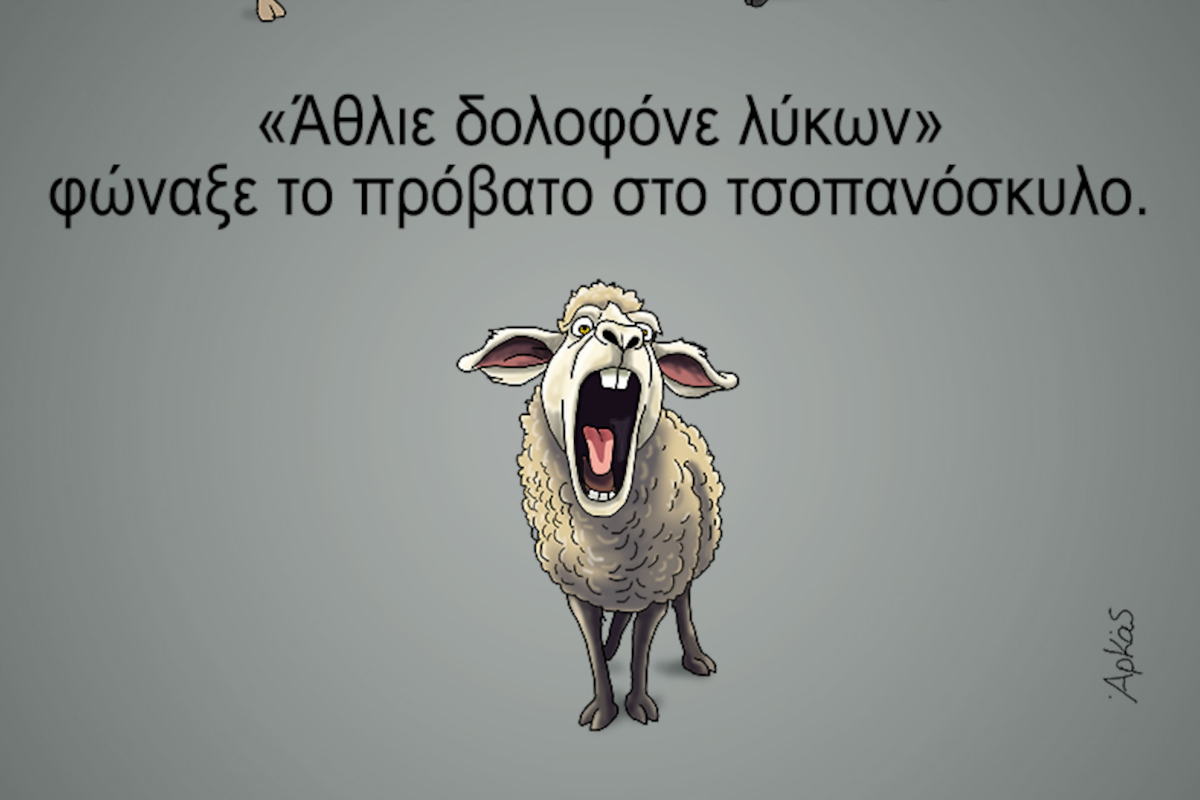 Ο γνωστός σκιτσογράφος με το καυστικό χιούμορ στο σημερινό σκίτσο του βάζει ένα πρόβατο να κατηγορεί τον προστάτη που πάει να τον σώσει από τους…κακούς τους λύκους