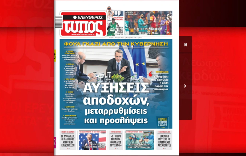 Διαβάστε δωρεάν τον «Ελεύθερο Τύπο» της Τετάρτης 01 Οκτωβρίου σε ψηφιακή μορφή