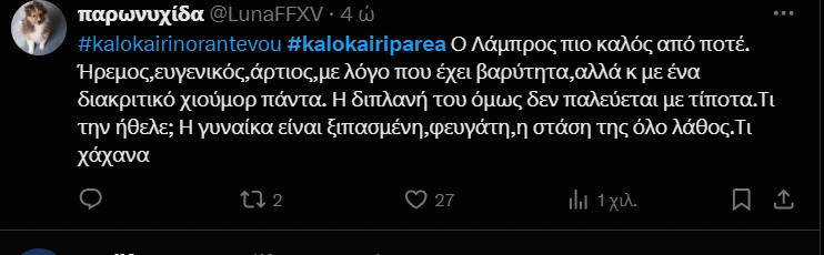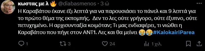 Το X πήρε φωτιά και τα σχόλια έπεσαν βροχή, με τις δύο παρουσιάστριες να βρίσκονται στο επίκεντρο και να κρίνονται έντονα. Πολύ συζητήθηκε και η Μαρία Αντωνά, που βρίσκεται στο team Καραβάτου.