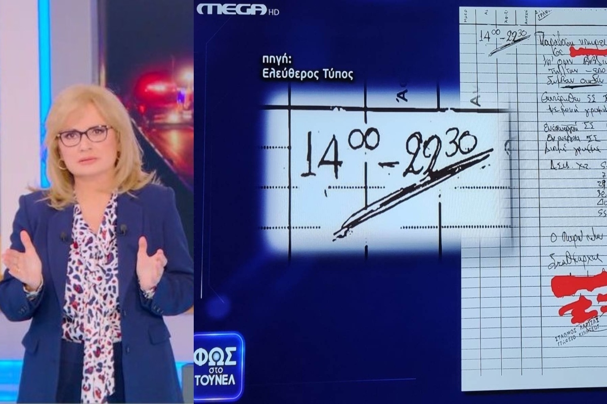 «Το Mega παρουσίασε ένα ντοκουμέντο, λίγα λεπτά μετά από αυτή την τραγωδία, λίγο μετά από τη σύγκρουση, όταν κάποιοι σταθμάρχες έτρεξαν να πάνε στο σταθμαρχείο για να αλλάξουν την ώρα που έφυγαν, να πλαστογραφήσουν ένα έγγραφο για να μη φαίνεται τι ώρα έφυγαν, δεν μπορώ να το διανοηθώ αυτό.