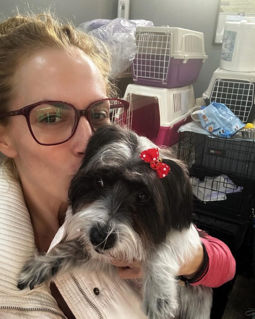 Η Ντορέττα Παπαδημητρίου, κουμπάρα της προαναφερθείσας, δεν σταματά να φωτογραφίζει την Gigi της! Πρόκειται για ένα μικρόσωμο σκυλάκι, το οποίο η ηθοποιός έσωσε, όπως έχει αποκαλύψει. «Αυτή είναι η πρώτη φωτογραφία μας με την Gigi, αφού τη βρήκαμε παρατημένη, μαζί με τα αδέλφια της, σε ένα χαντάκι! Υιοθετήθηκαν και τα 3 κουτάβια. Εμείς υιοθετήσαμε την Gigi. Πιστεύω ότι μας διάλεξε… Πέντε χρόνια τώρα που είναι μαζί μας, η αγάπη και η γλύκα της γεμίζουν το σπίτι μας. Με έναν μαγικό τρόπο είναι σαν να την είχαμε πάντα κοντά μας. Μας δίνει τόση αγάπη και, φυσικά, κι εμείς της την επιστρέφουμε πολλαπλασιασμένη. Καταλαβαίνει και αισθάνεται τα πάντα, χαίρεται με τη χαρά μας και είναι πάντα δίπλα, κουλουριασμένη και ήσυχη όταν νιώθει ότι κάτι μας στενοχωρεί. Οσα και να πω είναι λίγα για το πόσο μας άλλαξε τη ζωή. Ανοίξτε την καρδιά και το σπίτι σας σε ένα αδέσποτο! Θα είναι από τα πιο σωστά πράγματα που έχετε κάνει», είχε γράψει στο παρελθόν η ηθοποιός.