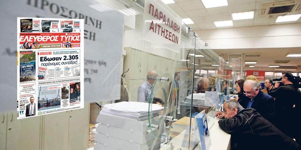 Διαβάστε εδώ την αποκάλυψη του Ελεύθερου Τύπου της Κυριακής: Αποκλειστικό: Πώς έδωσαν παράνομα 2.305 επικουρικές συντάξεις