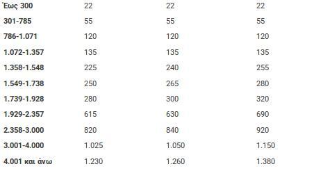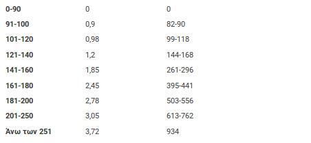 Διοξείδιο του άνθρακα ανά χλμ. Ανά γραμμ. εκπομπών C02 σε ευρώ Τέλη κυκλοφορίας