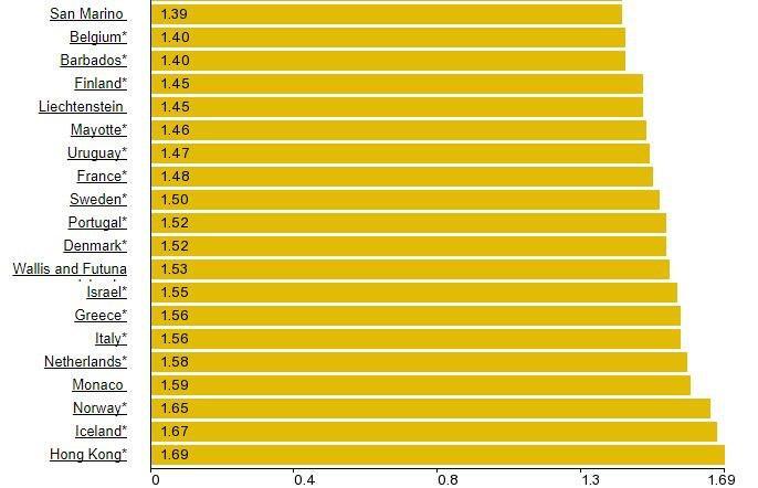 Στην χώρα μας την τελευταία εβδομάδα η βενζίνη πωλείται κατά μέσο όρο στα 1,56 ευρώ, όσο και στην γειτονική Ιταλία. Στην πρώτη θέση παγκοσμίως, με την ακριβότερη δηλαδή βενζίνη βρίσκεται το Χονγκ Κονγκ με 1,69 ευρώ, στην δεύτερη η Ισλανδία με 1,67, στην τρίτη η Νορβηγία με 1,65, στην τέταρτη το Μονακό με 1,59, στην πέμπτη η Ολλανδία με 1,58 και ακολουθούν Ελλάδα και Ιταλία με 1,56. Έπεται το Ισραήλ με 1,55, τα νησιά Ουαλίς και Φουτουνά, στον Ειρηνικό Ωκεανό με 1,53, η Δανία και η Πορτογαλία με 1,52 ευρώ.