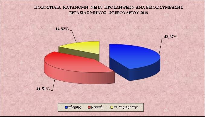 Οι θέσεις εργασίας σύμφωνα με το πληροφοριακό σύστημα Εργάνη είναι κατά 43,67% πλήρους απασχόλησης, κατά 41,51% μερικής απασχόλησης και κατά 14,82% πρόκειται για θέσεις εκ περιτροπής εργασίας. Ουσιαστικά πάνω από 1 στους 2 εργαζόμενους απασχολείται με όρους ευέλικτης εργασίας.