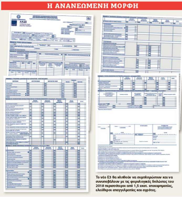 Στο νέο έντυπο Ε3 ζητείται ένα πλήθος πρόσθετων πληροφοριακών στοιχείων για τις επιχειρηματικές και αγροτικές δραστηριότητες των φορολογουμένων. Οπως υποστηρίζει η ΑΑΔΕ, ο βασικός στόχος της αναμόρφωσης και του ανασχεδιασμού του Ε3 είναι η πληρέστερη καταγραφή και αποτύπωση των οικονομικών δεδομένων όλων των επιχειρήσεων, των ελεύθερων επαγγελματιών και των αγροτών.
