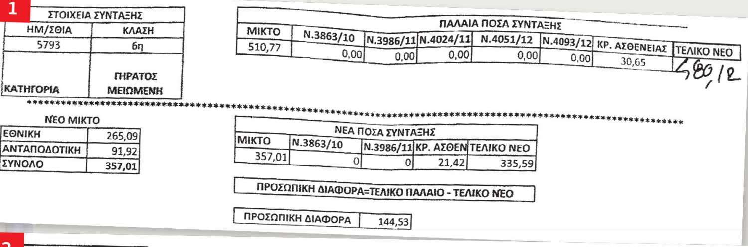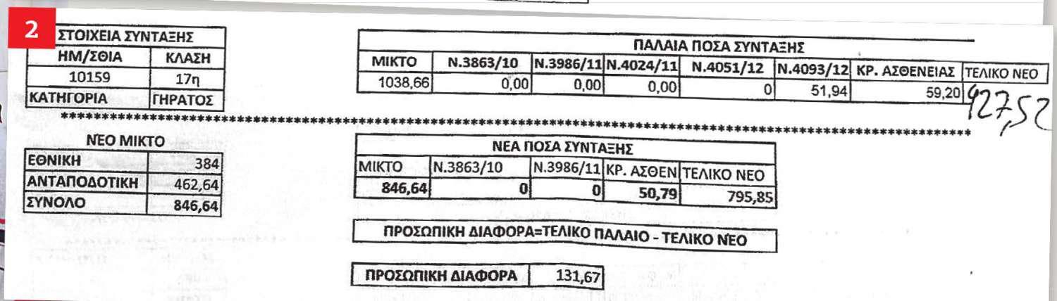 Σε αυτά αναφέρεται το νέο ποσό (αναπροσαρμοσμένη επικουρική) και στην κάτω σειρά αναφέρεται η προσωπική διαφορά.