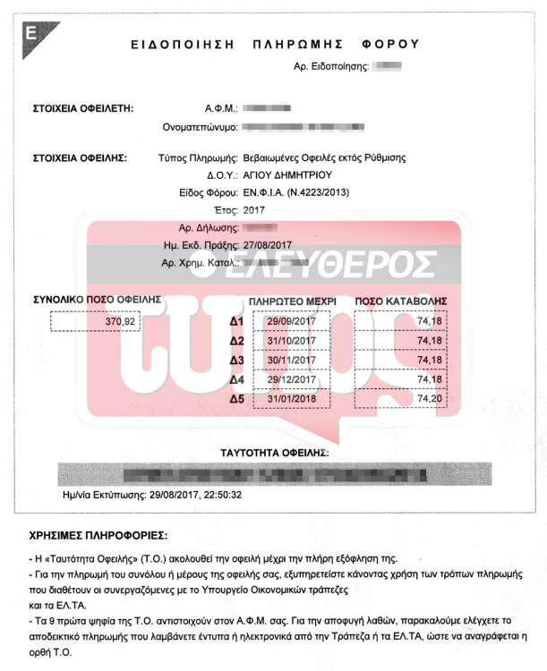 Χαρακτηριστική των αδικιών που έχουν διαπραχθεί με τον φετινό ΕΝΦΙΑ σε βάρος φορολογουμένων με χαμηλά και μεσαία εισοδήματα, οι οποίοι κατοικούν σε «λαϊκές» περιοχές, είναι η περίπτωση κατοικίας 113 τ.μ. στον Αγιο Δημήτριο Αττικής, σε περιοχή όπου η αντικειμενική τιμή ζώνης αυξήθηκε τον περασμένο Ιούνιο κατά 10%, από 1.000 σε 1.100 ευρώ το τ.μ. Εξαιτίας της αύξησης αυτής, το συγκεκριμένο ακίνητο ανέβηκε σε υψηλότερο κλιμάκιο υπολογισμού του ΕΝΦΙΑ, με αποτέλεσμα ο συντελεστής του κύριου φόρου να αυξηθεί από 2,9 σε 3,7 ευρώ ανά τ.μ. και η τελική επιβάρυνση των κύριων χώρων του ακινήτου να διαμορφωθεί από τα 364,07 ευρώ το 2017 στα 464,51 ευρώ το 2018. Η αύξηση του ΕΝΦΙΑ στην περίπτωση αυτή ανήλθε σε ποσοστό 27,59%.
