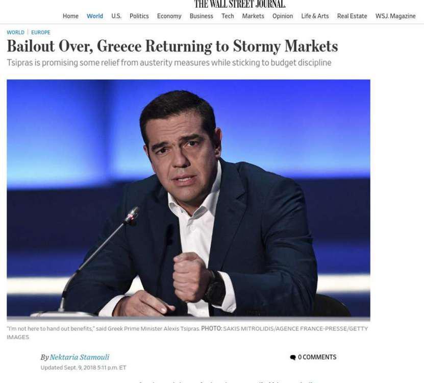 «Παρά το τέλος των Μνημονίων, η Ελλάδα παραμένει η πιο εύθραυστη οικονομικά χώρα, ευάλωτη στην αστάθεια των αγορών», σημειώνει η WSJ.