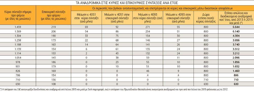 Τα αναδρομικά στις κύριες και επικουρικές συντάξεις ανά έτος