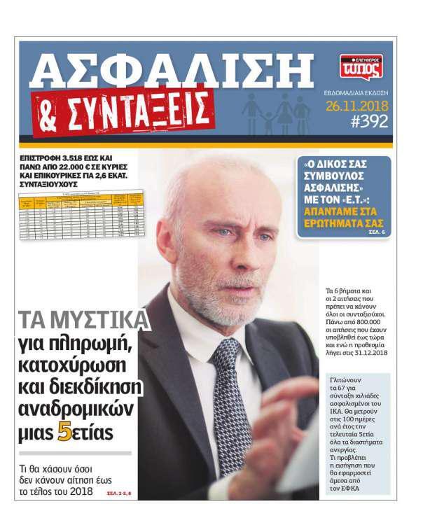 Διαβάστε ολόκληρο το ρεπορτάζ στο ένθετο «Ασφάλιση & Συντάξεις» στην έντυπη έκδοση του Ελεύθερου Τύπου