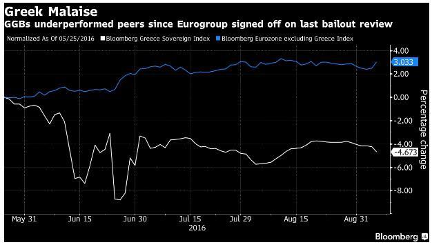«Η αξιολόγηση ολοκληρώθηκε, όμως η Αθήνα ήδη είναι πίσω με τα 15 προαπαιτούμενα για την επόμενη υποδόση», λέει ο Wolfango Piccoli, αναλυτής της Teneo Intel στο Λονδίνο. «Στο μεταξύ οι προοπτικές για μία συμμετοχή της Ελλάδας στο QE και για την ελάφρυνση του χρέους – δύο θετικούς καταλύτες – δείχνουν να μπαίνουν στο περιθώριο όσο περνάει ο καιρός», προσθέτει.