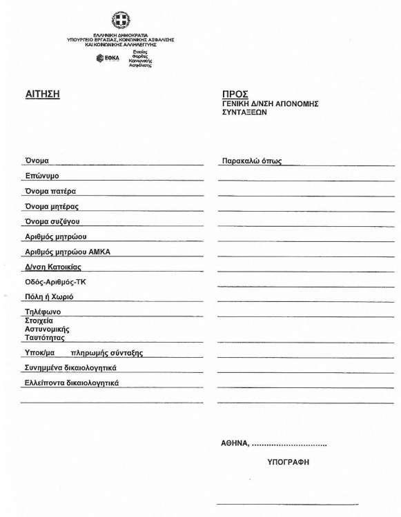 • Στα κενά σημεία, οι συνταξιούχοι θα αναγράψουν την ημερομηνία αποχώρησής τους και το ποσό σύνταξης που παίρνουν χωρίς την προσωπική διαφορά.