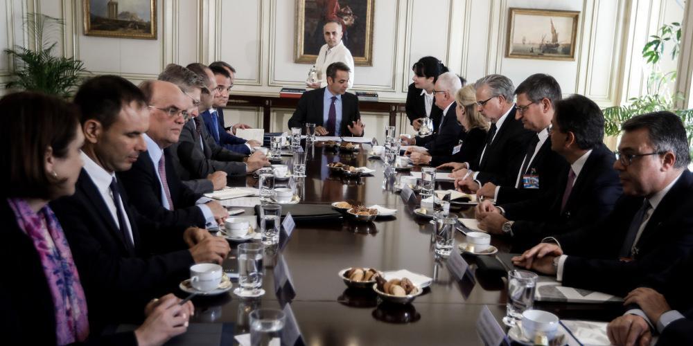 Από την πλευρά της κυβέρνησης στη συνάντηση μετείχαν ο Υπουργός Οικονομικών Χρήστος Σταϊκούρας, ο Υπουργός Ανάπτυξης & Επενδύσεων Άδωνις Γεωργιάδης, ο Υπουργός Επικρατείας Γιώργος Γεραπετρίτης, ο Υφυπουργός παρά τω Πρωθυπουργώ, αρμόδιος για τον Συντονισμό του Κυβερνητικού Έργου, Άκης Σκέρτσος, ο Υφυπουργός Οικονομικών Γιώργος Ζαβός, ο Υφυπουργός παρά τω Πρωθυπουργώ και Κυβερνητικός Εκπρόσωπος Στέλιος Πέτσας και ο επικεφαλής του Οικονομικού Γραφείου του Πρωθυπουργού Αλέξης Πατέλης.