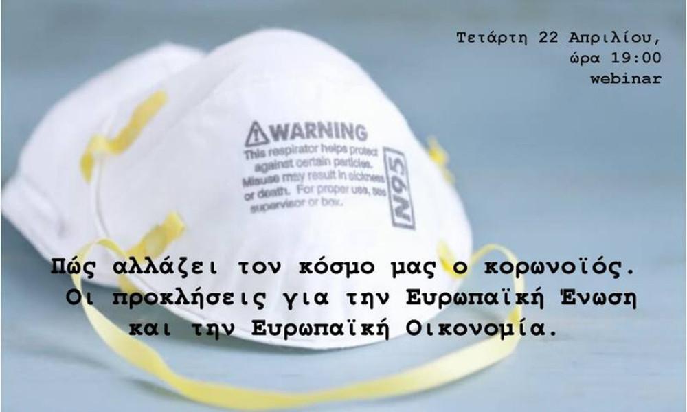 Το θέμα της συζήτησης είναι: «Πώς αλλάζει τον κόσμο μας ο κορονοϊός; Οι προκλήσεις για την Ευρωπαϊκή Ένωση και την ευρωπαϊκή οικονομία».