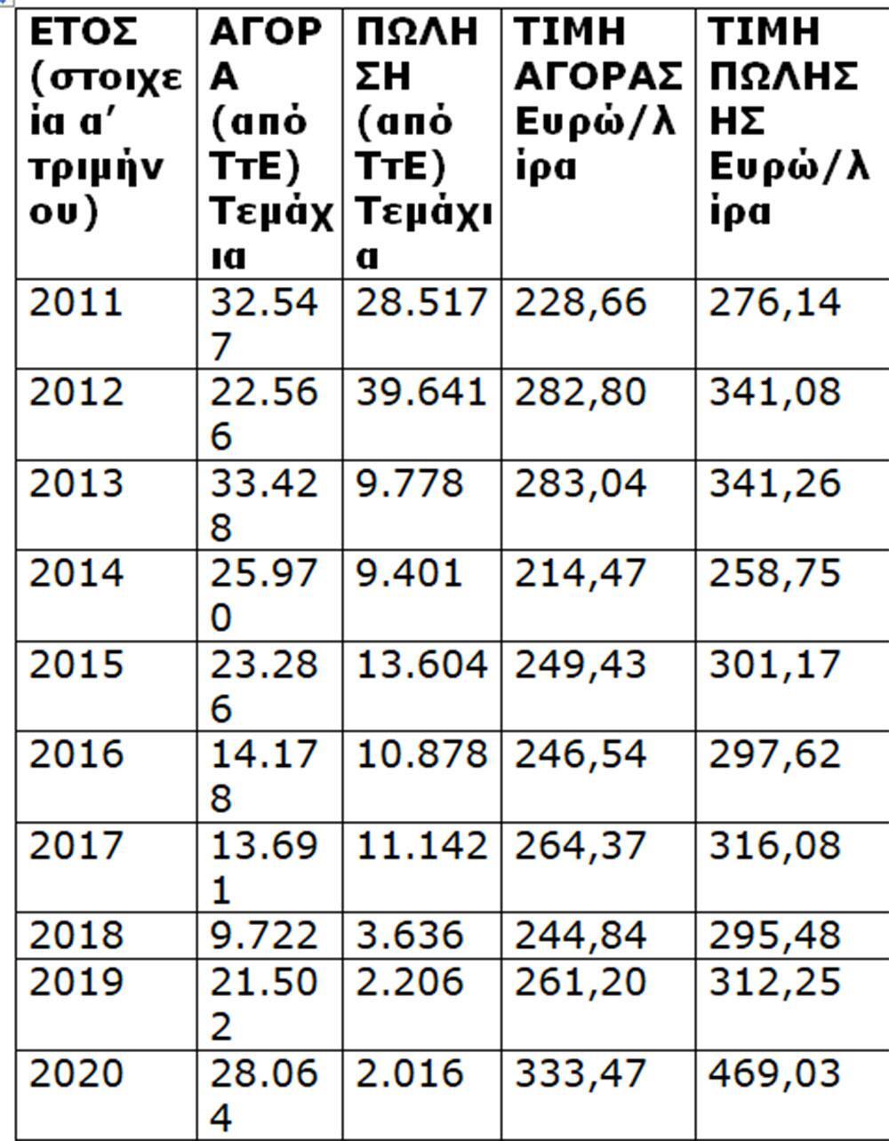 Πιο αναλυτικά, όπως προκύπτει από τα στοιχεία της Τραπέζης της Ελλάδος (ΤτΕ), το α’ τρίμηνο του 2020 αγόρασε από ιδιώτες 28.064 τεμάχια (Ελισάβετ 1973, 1974 και προγενέστερων ετών) έναντι 21.502 το ίδιο περυσινό διάστημα (αύξηση 23,38%).