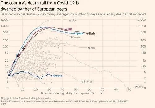 «Η Ελλάδα ήταν μέχρι τώρα ένα σπάνιο success story αναφορικά με τον κορωνοϊό. Με μόλις 2.744 επιβεβαιωμένα κρούσματα και 152 θανάτους σύμφωνα με στοιχεία του Πανεπιστημίου Τζονς Χόπκινς ο απολογισμός των θυμάτων της Covid-19 στη χώρα είναι πολύ μικρός σε σύγκριση με εκείνον των άλλων χωρών της νότιας Ευρώπης. Η Ελλάδα έλαβε νωρίς δραστικά μέτρα προχωρώντας σε πλήρες lockdown στις 16 Μαρτίου, 13 μέρες μετά την επιβεβαίωση του πρώτου κρούσματος κορωνοϊού», σημειώνει η ανταποκρίτρια της βρετανικής οικονομικής εφημερίδας.